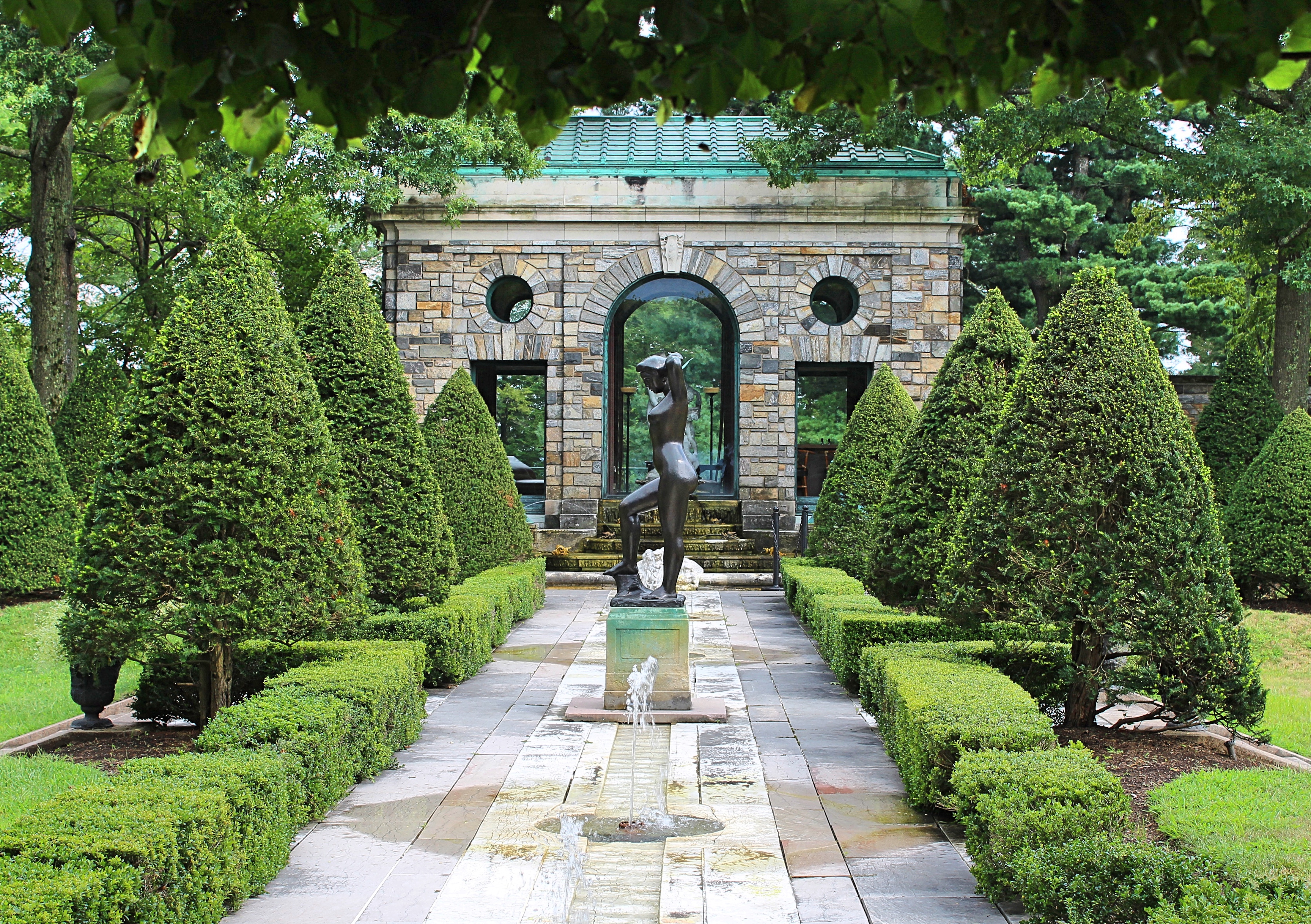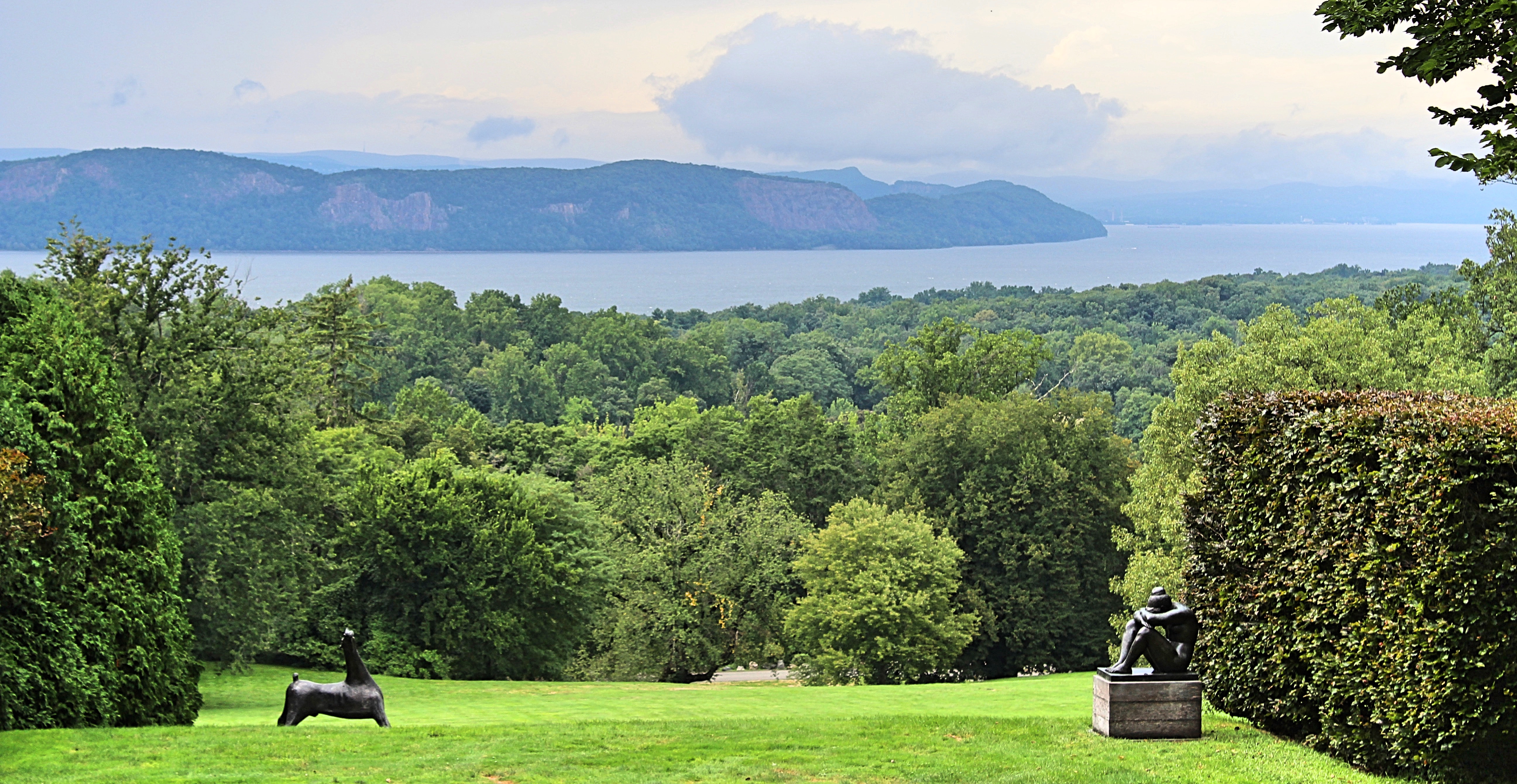 After this, our guide led us into the gardens. The most notable feature of these are the modernist statues scattered about—gruesome metal bodies amid neat hedgerows. Unsurprising for such a commanding spot, the view is excellent. On a tolerably clear day you can see all the way to Manhattan from the back porch. I imagined lounging on an easy chair, sipping some very posh drink—for some reason a mint julep comes to mind—and contemplating the Hudson. But of course the Rockefellers were Baptist stock, and teetotallers all, so the drink is pure fantasy. Beyond view (and beyond the scope of the tour) was the reversible nine-hole golf course that Rockefeller used with Baptist scrupulousness; after God and Mammon, golf was his top priority. Likely Rockefeller Senior would have been shocked and appalled by the massive modernist statue (resembling an alien squid) that was airdropped by helicopter into place on the property during his grandson’s tenure.