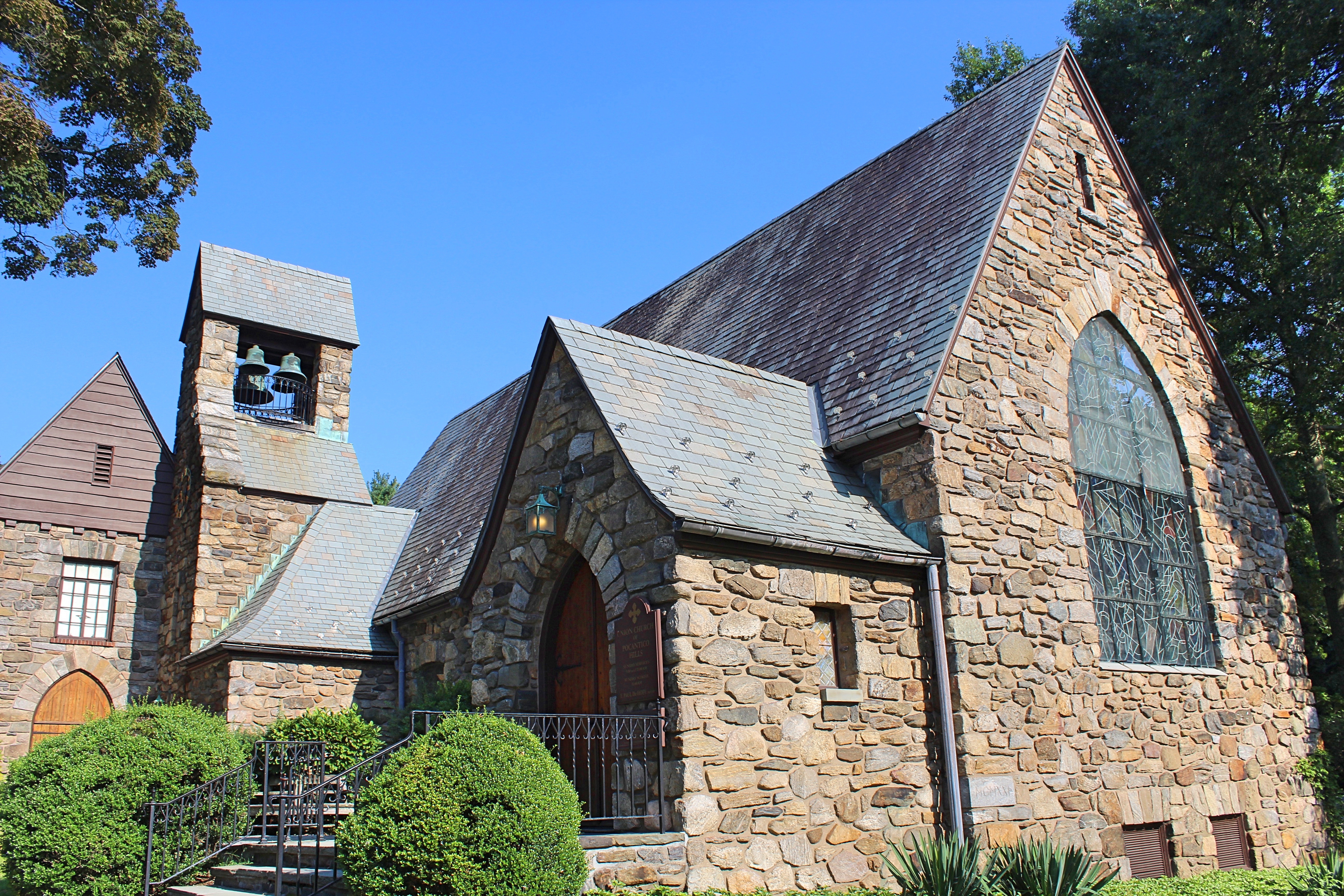The first is the Union Church. This is one of two non-denominational churches (the other being Riverside Church in Manhattan) commissioned by John D. Rockefeller, Jr. It is an attractive and modest building, made of cut stone with a steeply slanting roof. Though the church does have an active congregation, most of the time its main use is as a tourist attraction, also administered by Historic Hudson Valley. The church is notable for its stained glass. The rose window was designed by the modernist pioneer Henri Matisse; according to the guide (I was the only one on the “tour”), it was the last work the artist ever completed. It is a simple, abstract pattern, yet subtly interesting to look at. More memorable, however, is the series of stained-glass windows completed by Marc Chagall, using Biblical scenes to commemorate deceased members of the Rockefeller family. Though I am normally not greatly fond of Chagall’s work, I must say that the strong, simple colors of Chagall’s windows created a pleasant—if not exactly religious—atmosphere.