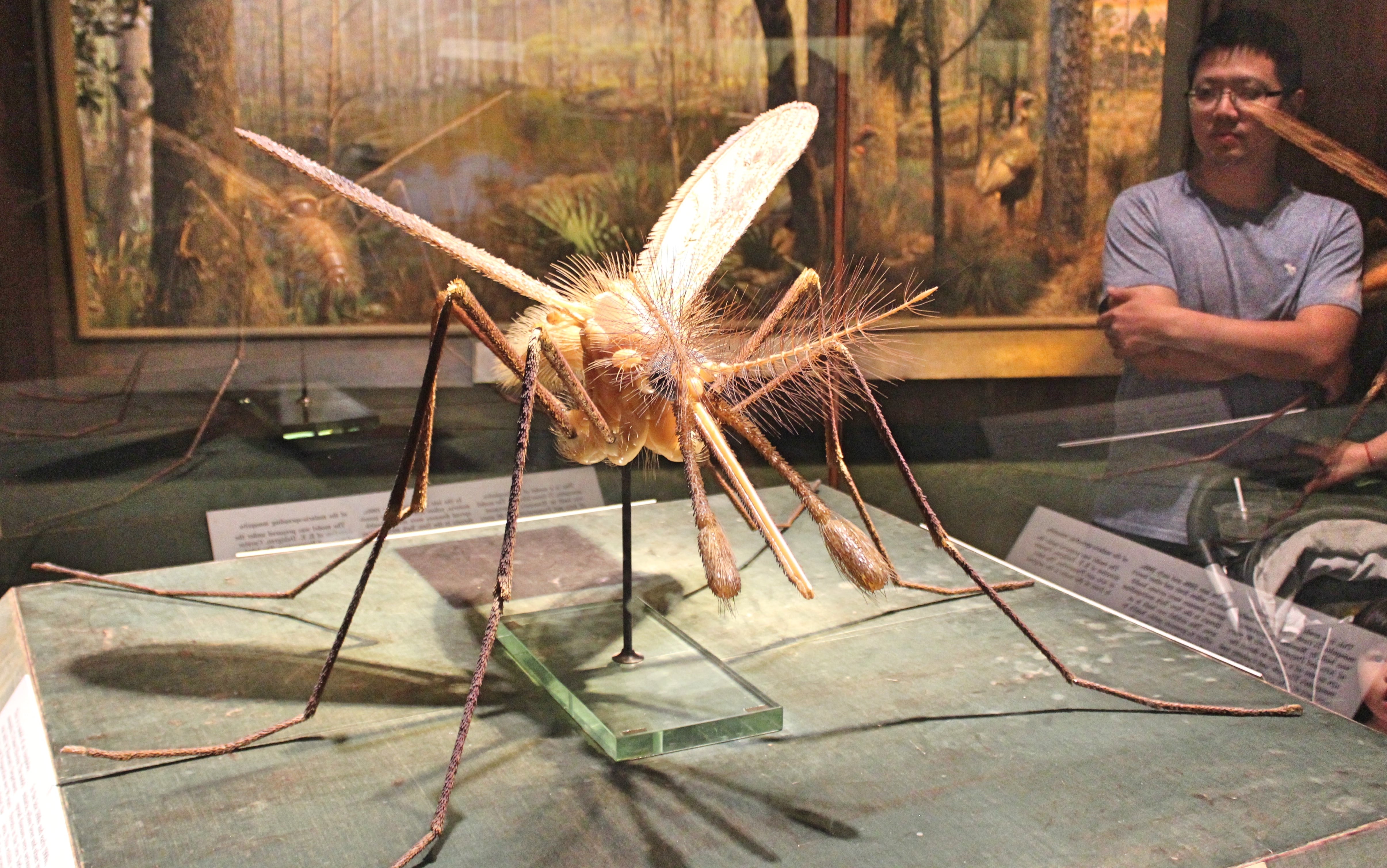 This hall is also notable for a diorama depicting the little critters who live in the soil, responsible for breaking down organic matter and keeping the cycles of life in swing. The worm, centipede, and daddy-long-legs are blown up to 24 times their actual size, which is not a pleasant sight. The same can be said for the giant model of a malarial mosquito, which does not increase my affection for that species. Teddy Roosevelt played a part in educating the public about the role mosquitos play in spreading malaria, since he had to deal with the disease when overseeing the Panama Canal.