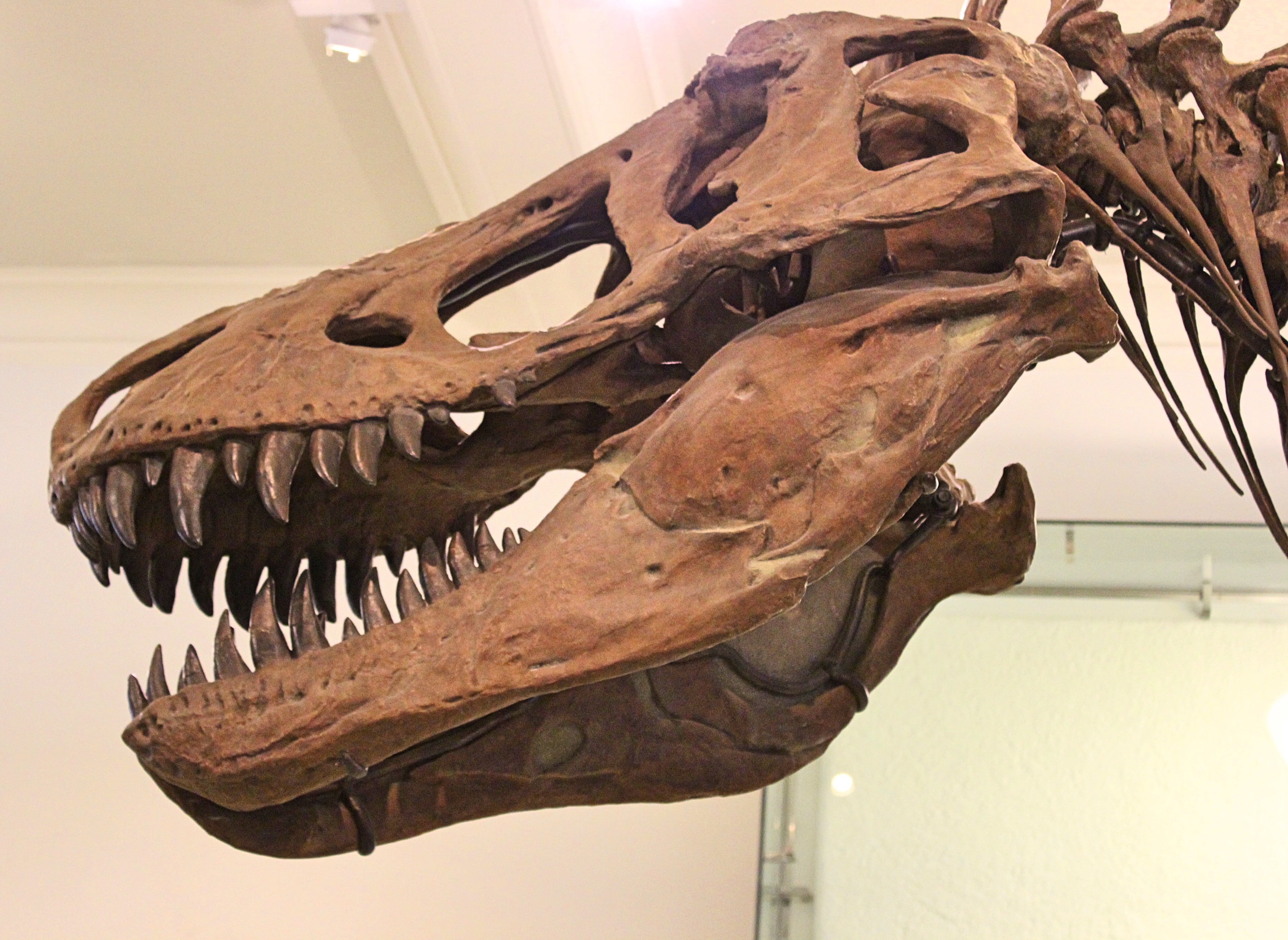 We now come to one of the museum’s most spectacular spaces: the Hall of the Saurischian Dinosaurs. Now, Dinosaurs are typically split into two large evolutionary groups, the Ornithiscia and the Saurischia. The latter includes all carnivorous dinosaurs as well as sauropods (and birds, the only living dinosaur group). This means that this gallery includes the famous Tyrannosaur. Even when manifestly dead, the Tyrannosaur has a commanding presence. The mere thought of it being alive is enough to cause goose bumps. And this predator—one of the largest to have ever walked the earth—was likely even more terrifying than we normally think. According to the paleontologist Stephen Brusette, Tyrannosaurus was highly intelligent, had excellent vision, and likely lived and hunted in packs. One of them is frightening enough; imagine a gaggle of T. Rex. And to think that this fearsome creature began its life no bigger than a chicken.