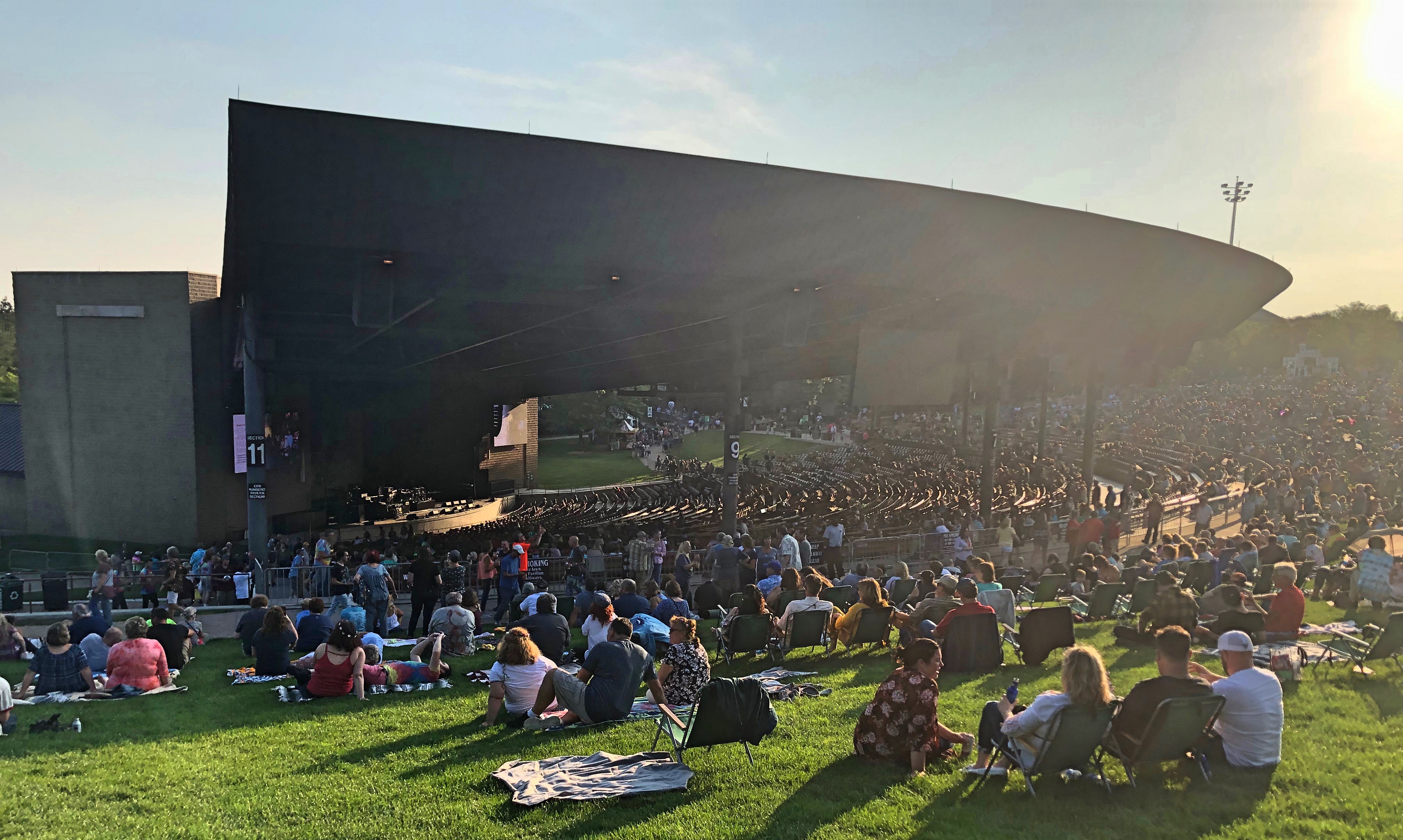 The original attendees slid around on the mud and bathed in the river; they entertained themselves with drum circles. You cannot bring a guitar or a drum into Bethel Woods, and to see the music you sit on either a rented lawn chair or within the concrete pavilion. The hippies tried to reject capitalism. Now, two jumbo-trons beside the stage play commercials and display ads before, between, and after the show. And the contrasts did not stop there.