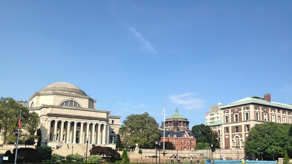 To get to our next church, we must walk a good twenty minutes or so. The pleasantest route takes us directly through the main campus of Columbia University. Founded in 1754 as King’s College, Columbia is the oldest university in New York, and one of the best in the world. Suffice to say that everyone from Alexander Hamilton to Barack Obama have studied there. The campus leaves no doubt as to the honor, splendor, and pretensions of the institution. The grandiose Butler Library, for example, is adorned with the names of great thinkers and writers: Herodotus, Plato, Shakespeare, Tacitus, Voltaire… Directly opposite is the Low Memorial Library, another stately neoclassical edifice; and on the steps leading up to its entrance is the statue of Alma Mater, a symbol of the university, made by the same sculpture who designed the Lincoln Memorial, Daniel Chester French.