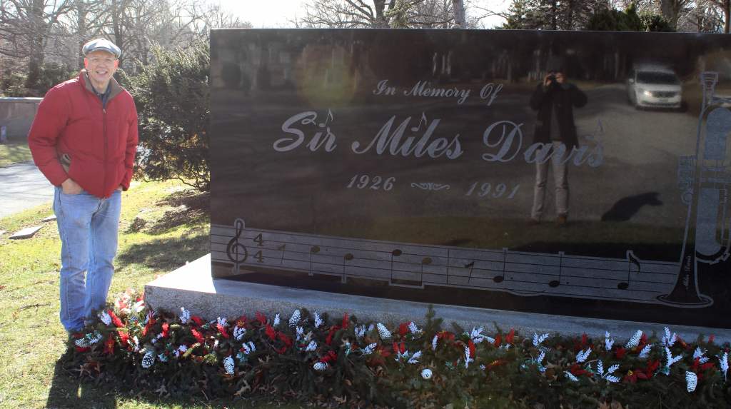 My father’s hero is also in this same cemetery: Miles Davis (1926 – 1991). A bass player and jazz lover, my dad has been talking to me about Miles Davis all my life, especially Davis’s landmark album, Kind of Blue; so it was gratifying for us both to finally visit him. Davis’s grave is a large tombstone, so highly polished as to be almost mirror-like. The first two measures of one of Davis’s compositions, “Solar,” are inscribed on the tombstone. Curiously, Davis is referred to as “Sir,” which as I learned was because he was inducted into the Order of Malta (in a ceremony in the Alhambra in Granada).