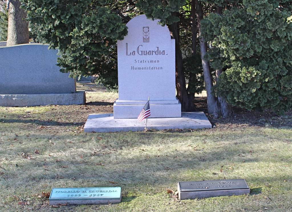 Two major figures from the history of New York City are also here in Woodlawn. Fiorello La Guardia (1882 – 1947), the short Italian sometimes called the “Little Flower” who was arguably the city’s most influential mayor. He sits under an elegant tombstone, which states simply: “Statesman, Humanitarian.” Buried within the community mausoleum is someone perhaps even more influential in the city’s history, Robert Moses (1888 – 1981), the subject of the landmark biography The Power Broker. Moses was a power broker indeed, responsible for the building of parks, roads, public housing projects, and bridges. In the process, Moses displaced hundreds of thousands of the poor and destroyed whole communities. He died with his reputation in tatters, yet having fundamentally shaped New York in the twentieth century.