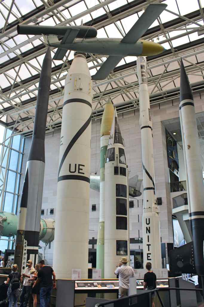 If you retain even one iota of the childhood wonder of human flight, then the Air and Space Museum will be a delight. It is exactly what you would expect: room upon room full of fighter jets, propeller planes, gliders, rockets, missiles, satellites, space shuttles, and landing craft. So many of these vehicles are connected with American firsts—the first airplane, the first transatlantic flight, the first man on the moon—that a visiting citizen cannot help but feel a mixture of pride and also nostalgia, since these great achievements now seem so very distant. Indeed, the Cold War still hangs over this museum like a stubborn ghost, as it was this conflict which spurred us to the furthest reaches of the atmosphere and beyond.