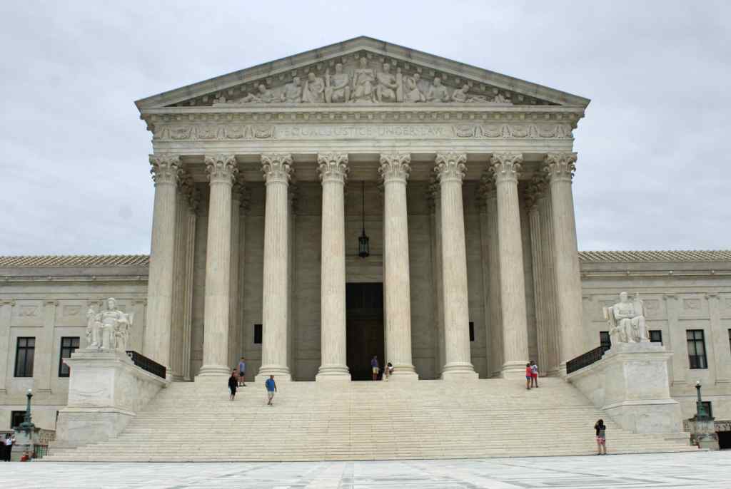 Designed by Cass Gilbert, a friend of Taft, the Supreme Court Building is a testament to the American pretension for fancying ourselves heirs of Greco-Roman culture. The building takes the form of a Greek temple, with columns, pediment, and walls made of white marble. Two brooding statues, the Authority of Law (masculine) and the Contemplation of Justice (feminine), flank the staircase leading up to the main entrance. Above, in the pediment, is a frieze with the great theme: “EQUAL JUSTICE UNDER LAW” (they spell it out in case you miss it).