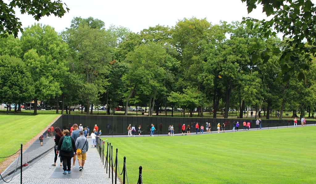 The most iconic memorial, however, is that devoted to the Vietnam War, which stands north of the pool. In design, it could hardly be simpler: a black wall that cuts a triangle into the earth, inscribed with the names of all the servicemen (and, later, some women) who died in the conflict. At the time, this design was controversial, both for its simplicity and also because its designer was an Asian woman, Maya Lin. As a compromise, a more traditional sculpture, The Three Soldiers, was placed nearby. But history has vindicated Lin’s design. Even the casual visitor cannot help but sense the trauma left by the war. Indeed, the sculpture itself was conceived as a kind of wound in the earth, which opens and then closes as the visitor makes their way from end to end. Friends and family and old comrades still leave flowers and photos besides the names of their loved ones.
