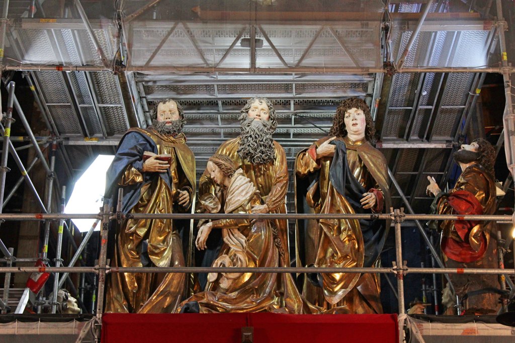 Yet the loveliest building of the bunch, for me, is St. Mary’s Basilica. Like the cathedral at Chartres, this basilica has two unmatching towers, which rise splendidly over the main square. The interior is even more impressive than the relatively unadorned façade. Pride of place undoubtedly belongs to the magnificent wooden altarpiece, carved by one Veit Stross. As you may have guessed from his name, Stross was a German; yet his masterpiece has—ironically, perhaps—become an icon of the Polish identity. Even more ironically, this artistic treasure was stolen by the Nazis, only to be found in the basement of the Nuremberg Castle (a city, as it happens, where Stross also lived and worked). Passing over the other lovely works of art in the basilica—most notably, Jan Matejko’s murals—I must mention the hejnał mariacki, a bugle call played every hour, twenty-four hours a day, from the taller tower. It is a beautiful melody that ends awkwardly and abruptly, in honor of a bugler who was, supposedly, shot in the throat by an arrow during an attack by the Mongols, in the 13th century.