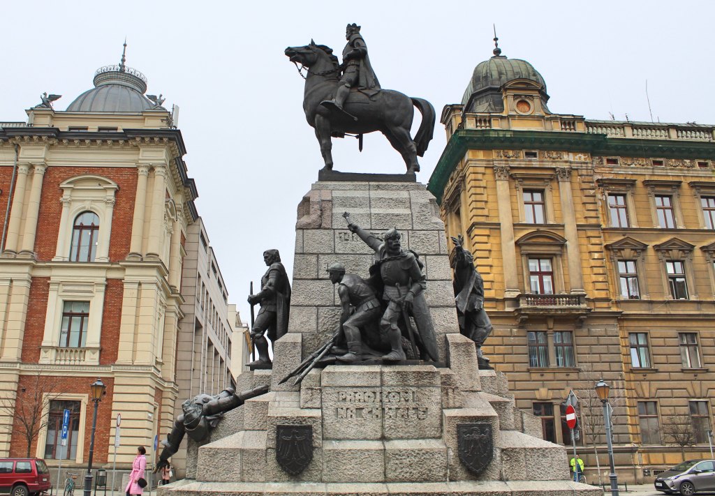 The first thing to catch our eyes was the Grunwald Monument. This is an enormous equestrian statue of the Polish king Władysław II Jagiełło (don’t ask me to pronounce it), who forged an alliance with Lithuania and defeated the Teutons (Germans) in the battle of Grunwald. This epochal battle, which took place in 1410, is said to mark the beginning of Poland’s golden age; and the monument was erected 500 years later, in 1910, to commemorate this symbol of Polish pride. Unsurprisingly, when the Nazis invaded, they could not abide the sight of a monument to a German defeat; so they did what Nazis do, and destroyed it. The monument was rebuilt in 1976—and may it be forever a symbol of Poles triumphing over Germans.