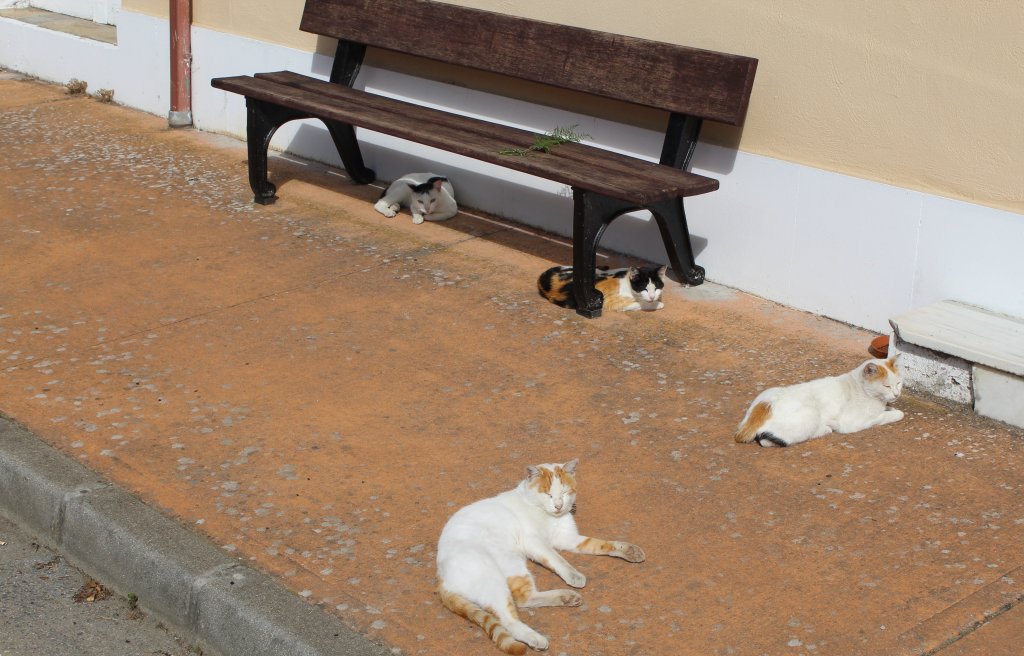 Armed with this information, I kept on going. The sun climbed in the sky and it got hot enough for me to stop and change into shorts. Finally the landscape began to bloom as I left the highway and made my way into the woods. Cows abounded, often sunning themselves on the grass. And every village had its colony of stray cats. About three-quarters of the way there, I was accosted (in English) by a shirtless man asking me for some change. I didn’t have any and told him so. But I was taken aback at the request, as we were really not near any village.