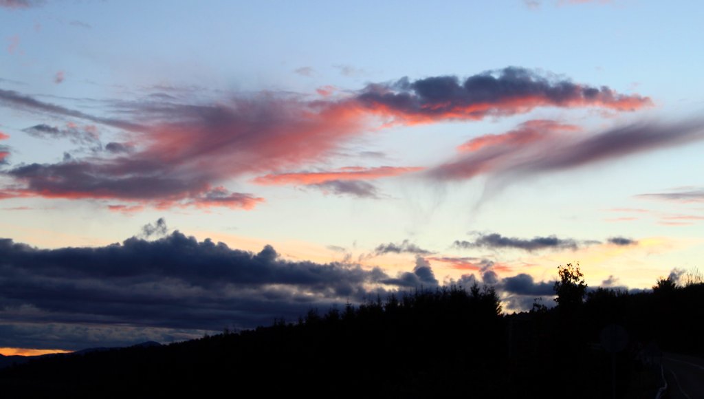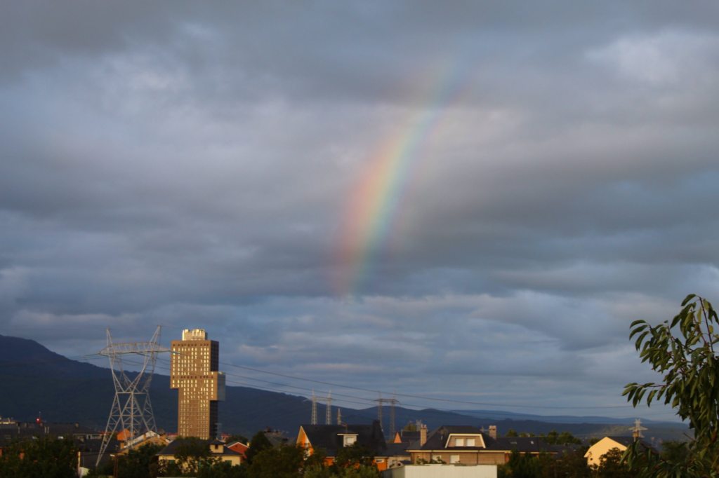 I awoke early, before my alarm, at half past five. Outside it was calm and black. The route took me along the river Sil to the outskirts of the city. On the way, I passed the Fábrica de la luz and once again regretted not having been able to visit. It was not long before the western clouds were tinged with gold, and the gray dusk began to dissipate. Behind me, in the morning mist, a rainbow hovered over Ponferrada.