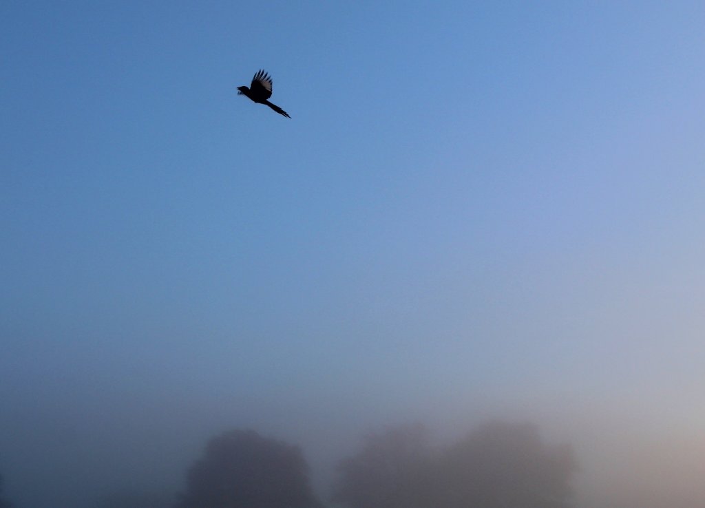 I crossed a stone bridge and then found myself in the countryside once more. Further on, the trail crossed a local railroad without any gates or lights to warn of an oncoming train. A little dangerous. It was remarkably misty that morning. The landscape was entirely invisible. The sun was just a vague yellow blotch in the sky, as in a painting by Turner. I could hardly even see ten feet in front of me (that’s about three meters). Out of the sea of fog a flying magpie appeared and disappeared. Somewhere nearby a dog started barking at me. Spiderwebs were covered in water droplets. And then, seemingly all at once, the fog cleared away and I was once again in the beautiful green of Galicia.