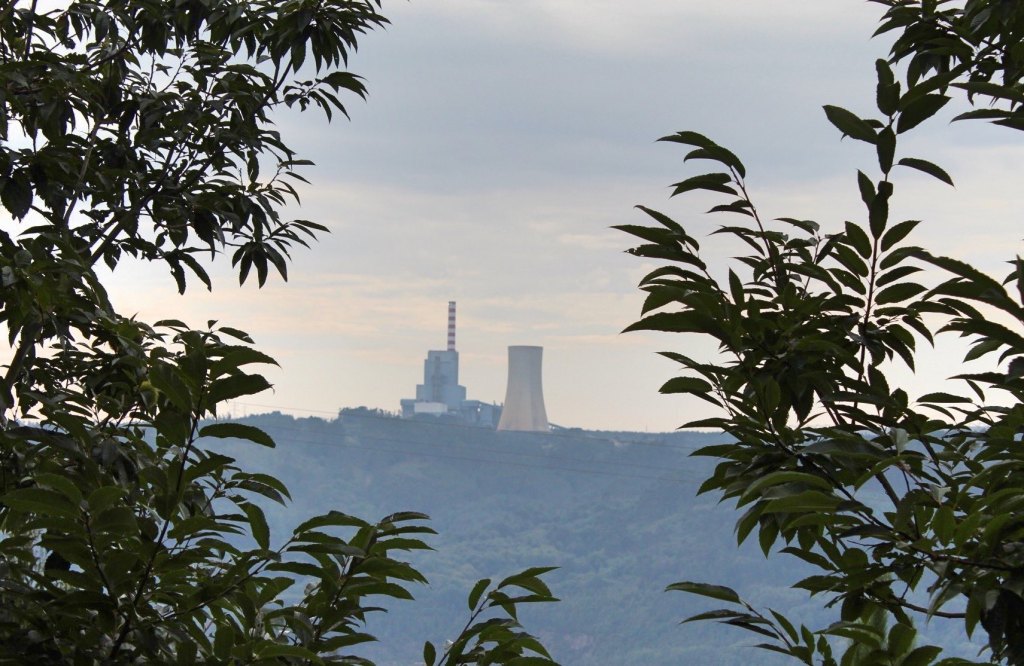 The narrow path took me alongside the Meirama Lake. This is not a natural lake, but was created to cover an industrial eyesore. For decades, not a lake but a lignite mine occupied this area, which only closed as recently as 2017. (Lignite is a type of coal.) Indeed, though at the time I assumed the surrounding trees were planted by loggers, they were actually put into place by the mining company as part of an environmental rehabilitation project that had previously denuded the area. An ominous concrete cylinder still sits, overlooking the lake, next to a featureless gray building.