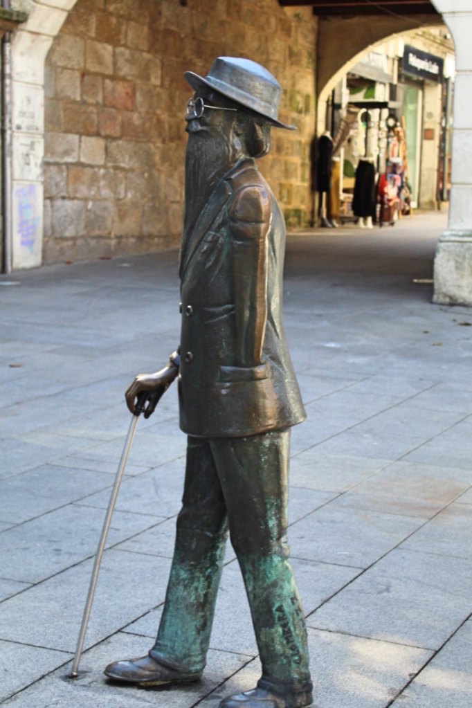 The car-free center of Pontevedra is well-preserved and charming. There are tiny side-streets and grand plazas, historic convents and ornate façades, and of course lots of restaurants and cafés. As I strolled around, I came across a life-sized statue of Ramón del Valle-Inclan, an iconic Spanish writer who was born just outside the city. He is outfitted in his usual way: neat suit, thick-rimmed glasses, and a long flowing beard. A literary innovator and iconoclast, he now holds an honored place among the Spanish literary patheon, and is one of the many writers often assigned to suffering high school students.