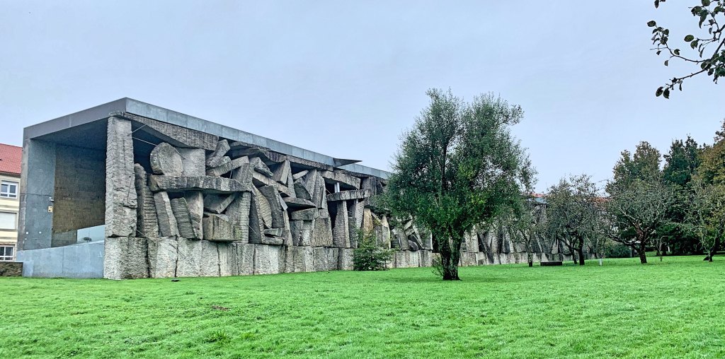 As an afterthought, I wanted to mention the strange architectural installment (sculpture?) I found on the edge of town, on my way to the forest. The thing consists of a kind of arched hallway, constructed of massive pieces of granite. This monstrous monument was built in honor of the Sociedade Xeral de Autores e Editores, which translates to the General Society of Authors and Editors, a private organization that aims to protect intellectual property of those who write and publish music, books, and plays. This sounds noble enough, but it sometimes boils down to publishing companies trying to wring money out of musicians and acting companies—most of which never gets to the artists or writers themselves. Once, the organization charged €96 to a high school theater company who wanted to do a play by Federico García Lorca, who died in 1936. This happened in 2010.