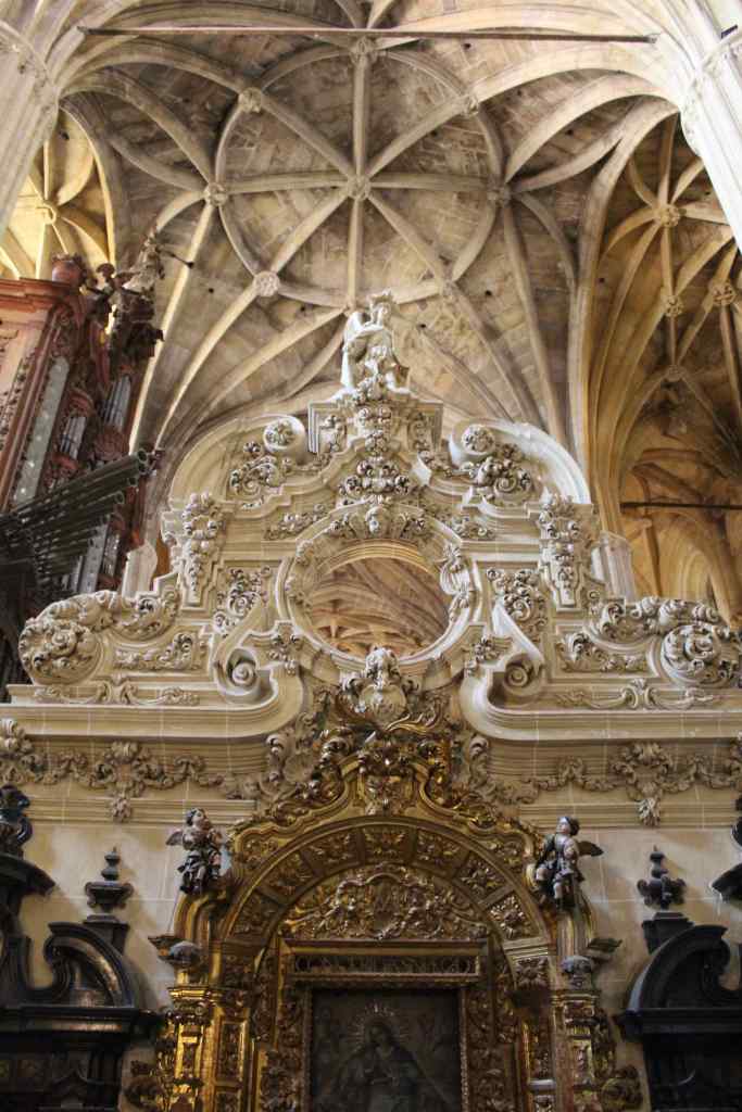 Next we visited the city’s cathedral. This is quite a grand building. But if you are used to the scale of European cathedrals, it may strike you as on the smaller side. This is because it was not originally built as a cathedral, but as a collegiate church which was later “promoted” to the status of cathedral in 1980. In any case, it is a lovely building with gothic flying buttresses and baroque decorations on its façade. Even lovelier might be the Church of San Miguel. If memory serves, the opening hours of this church are rather limited (and they aren’t posted online). But if you manage to get in, you will be rewarded with striking gothic vaults and richly-carved altarpieces.