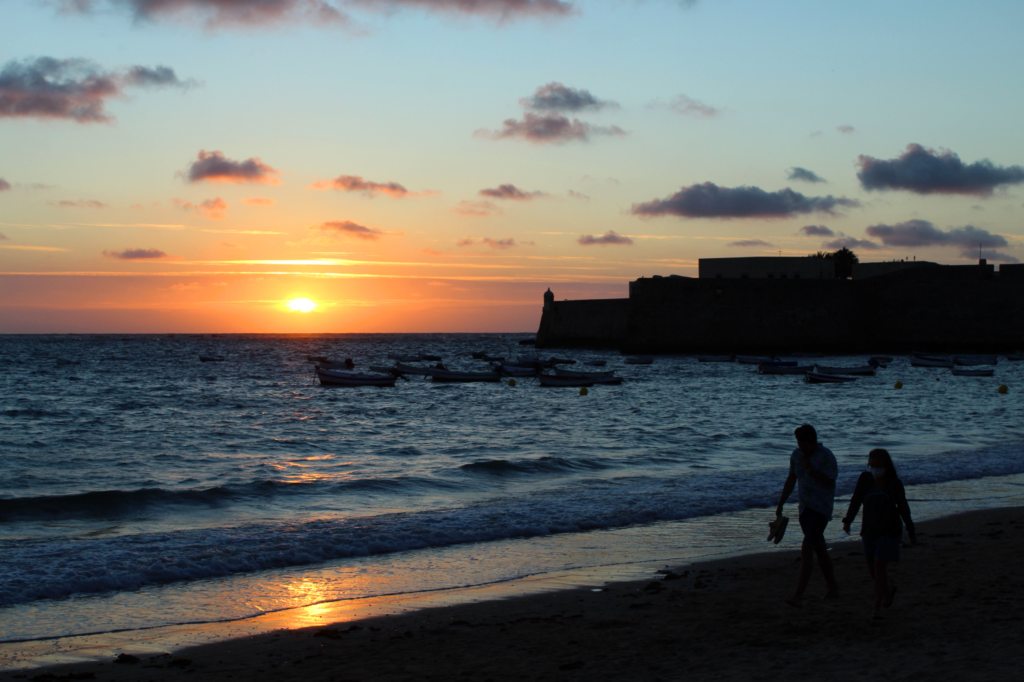 La Caleta is made especially picturesque by being flanked by two castles. On the right is the Castle of Santa Catalina, built around the year 1600. There is a small exhibition center inside and a good view of the beach. (I also think there is a hotel somewhere in the castle.) On the left side is the Castle of San Sebastián, which is located on a small island off shore, and connected by a thin walkway to the beach. It is possible that a Greek temple occupied this spot millennia ago, but the castle was built around the year 1700. The last two times I visited Cádiz the castle was closed, though the very first time I went I could go inside (and there was not much to see). In any case, the walkway is attractive enough to merit a visit.