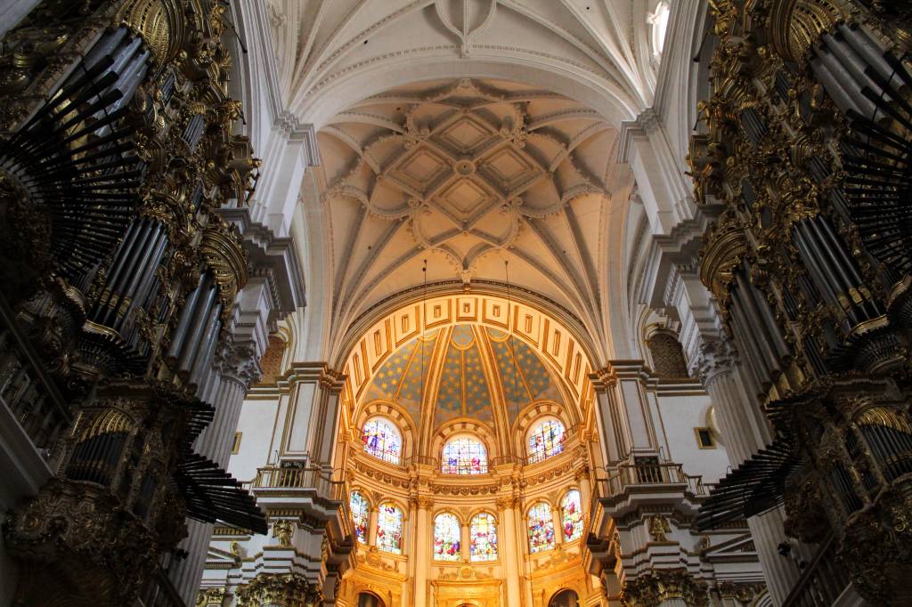 We experienced some relief when we entered the Granada Cathedral. The cavern-like interior was reasonably cool. As you may know, Granada was the last stronghold of Muslim Spain to fall to the Catholic Monarchs (Isabel and Ferdinand), finally conquered in that other fateful year, 1492. This cathedral is, then, something of a triumphalist monument, having been built over the remains of the mosque that once occupied this spot. To add insult to injury, the Catholic Monarchs are themselves portrayed as figures on either side of the main altarpiece (a device later used by Ferdinand II in El Escorial), piously thanking God for their victory.