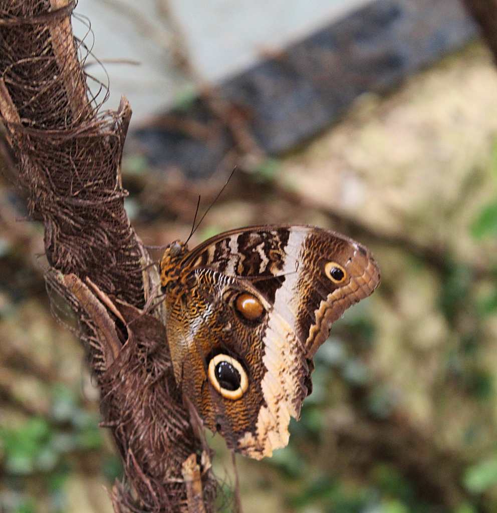 These silly buildings are interesting enough. But I think the real star of this area is the butterfly sanctuary. After paying the entry fee, you walk through heavy plastic flaps, and enter a tropical world—hot, humid, and full of exotic plants. Signs warn you to be careful where you step, so as not to accidentally crush any of the inhabitants. The air is teeming with life. Bright wings are continuously flapping all around you. The butterflies range in size from a postage stamp to a paperback book, and come in every color and pattern imaginable, some with long, slender wings, others with wings like flower petals.