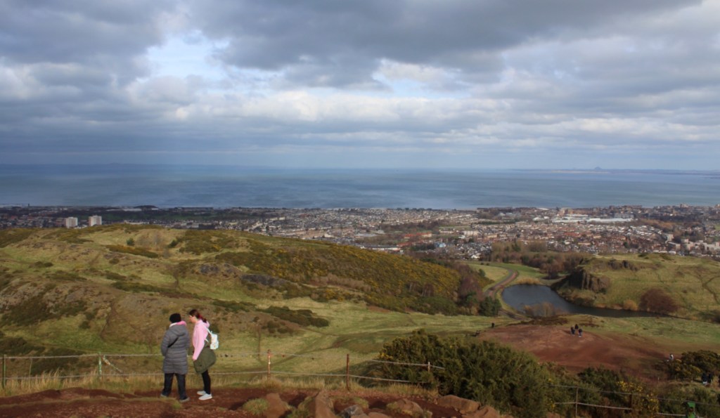 Even more fun to climb was Arthur’s Seat. This is a hill, formed by an ancient volcano, which looms over the city, and which is to Edinburgh what Central Park is to New York. Nobody quite knows why it is called Arthur’s Seat, as it seems highly unlikely that King Arthur—if he even existed—built Camelot here. Thinking that I ought to maximize my time in Edinburgh, I climbed the hill in a mad rush and got to the top in less than an hour. (What are vacations for, if not to anxiously hurry through?) Once there, I got a taste of the famous Scottish wind—or, as they might say, it was a wee bit blowy. The view of the city and the sea beyond was wonderful. The landscape was impressively rugged and wild. Somehow, for a park right next to the capital of Scotland, Arthur’s Seat transports you instantly to the middle of nowhere.