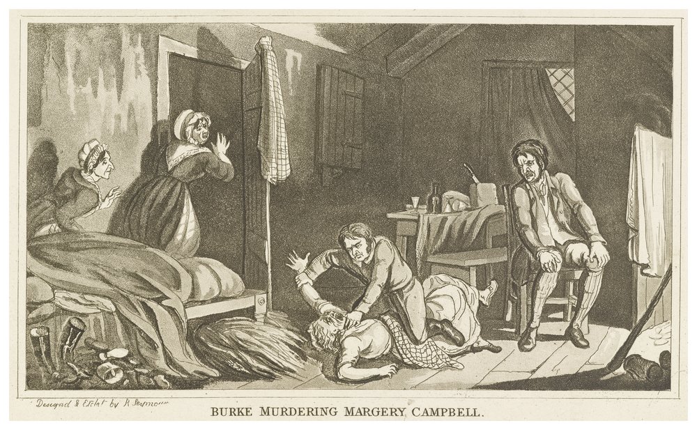 But in 1828, two men decided to take this practice one step further, and began murdering people in order to sell their bodies. The men had a very simple system: get a person very drunk, and then smother them to death by laying on top of the victim. After sixteen such murders, they were discovered. One of them, Hare, was inexplicably given a light sentence, while the other, Burke, was hanged for his crimes. With poetic justice, Burke’s body was then dissected before a group of medical students. His skeleton is still on display at Surgeon’s Hall in Edinburgh (I wish I had gone!), as well as—and this strikes me as a tad overboard—a notebook bound with Burke’s skin.