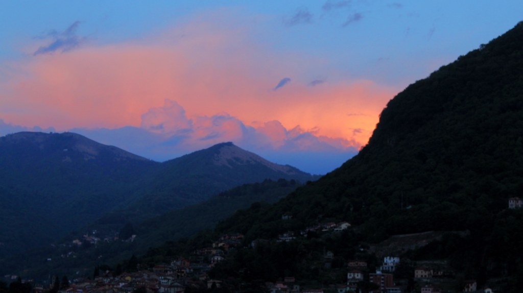 It seemed like a ghost town after Como. Very few people were in the streets, and the light was fading fast. We hadn’t eaten in hours and were starving by now. We had to find a restaurant. After a quick search online, I guided us to the Trattoria del Cacciatore, crossing my fingers that the place wouldn’t be packed. Indeed, we had the opposite problem: the restaurant was completely empty and they hadn’t even opened up the kitchen yet. I suppose Italians dine as late as the Spanish. We were told we would have to wait half an hour, but were invited into the restaurant’s large backyard to have a drink. The view was shockingly nice—the lake and the mountains stretching out before us, the sky red from the setting sun. I drank an aperol spritz before being called in to enjoy a fine meal. It had been a wonderful day in Italy.