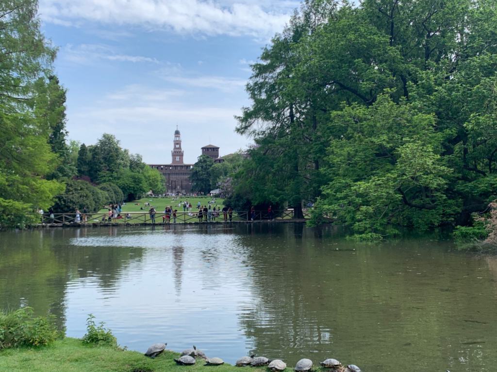 But we did not have time to visit any museums. Instead, we took a stroll around the lovely Parco Sempione, a large landscaped park. And as it was quite warm, we helped ourselves to some gelato. (Since we had traveled with Ryanair, which charges for carry-on luggage, we only had small backpacks and didn’t need to find a luggage locker.)