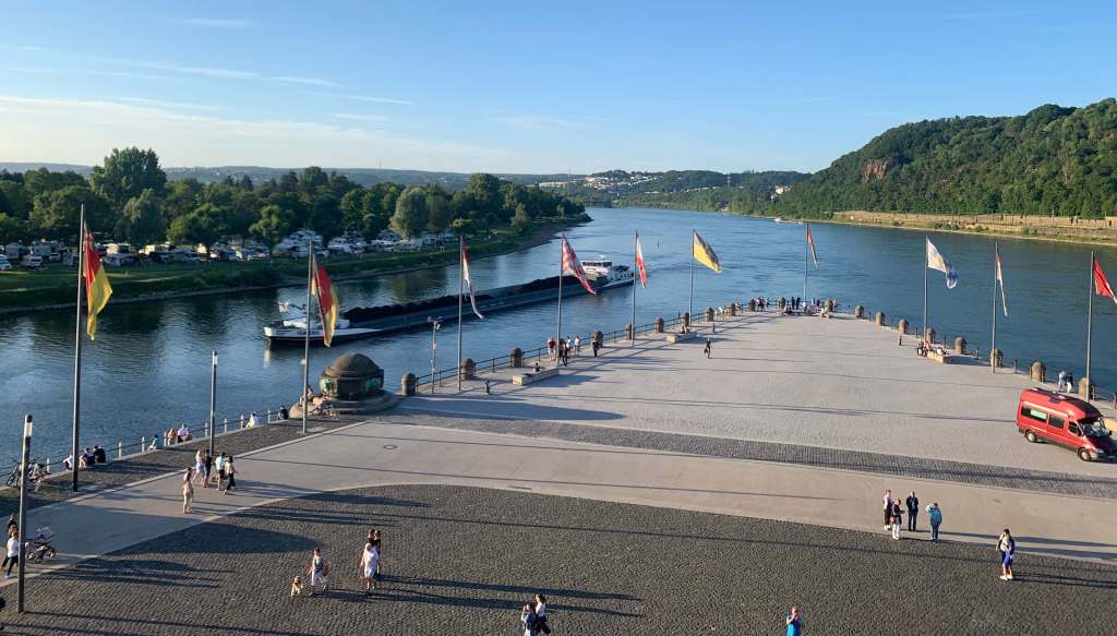 When I visited, the place was full of locals and tourists alike. The huge pedestal is a pleasant place to sit and enjoy the river, or for kids to climb and play on. Nearby, one can see the Koblenz cable car, which takes riders over the Rhine (sadly, I didn’t make time to go). The journey ends on the other bank of the Rhine, on the hill upon which sits Ehrenbreitstein Fortress. A real modern fortification rather than a romantic faux-medieval castle, this fortress is not exactly beautiful, but it is perhaps worth visiting for the view alone.