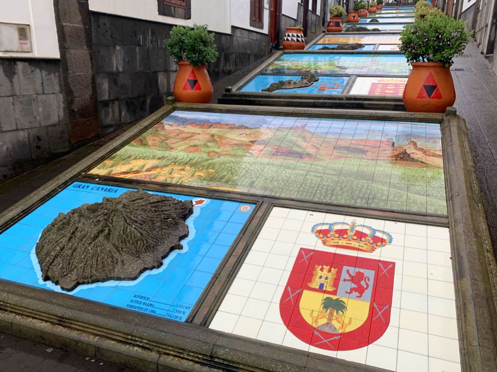 Next we stopped in the nearby town of Firgas. This attractive village is primarily famous for the Paseo de Canarias, which is a long fountain running alongside a walkway. The fountain is decorated with three-dimensional maps of the Canary Islands, along with their flags and coats of arms. Aside from this touristy eye-candy, however, Firgas is just a nice place to stop and have a coffee or a bite to eat.