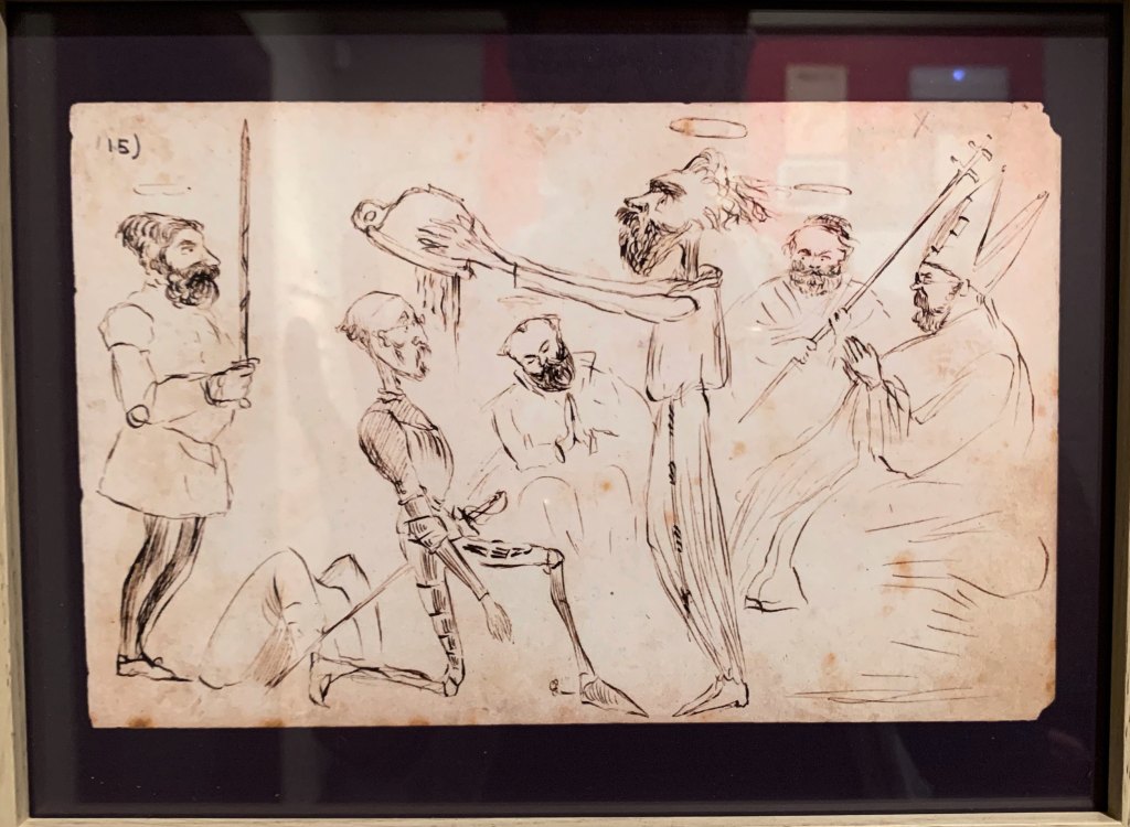 He was a man of many surprising talents. Aside from his obvious literary ability, Galdós was, for example, a skilled pianist. Indeed, he was quite the music enthusiast, and even devoted much of his time to writing criticism of performances. Galdós was also a decent draftsman. In the exhibition room near the entrance to the museum, you can see many examples of his sketches, some of which are of the characters from his books. Most surprising to me, however, was his ability as a woodworker. Much of the furniture in the museum was made with his own hands, and it is very fine work indeed. Surrounded by all of this, you get the impression of a man bursting at the seams with brilliance.