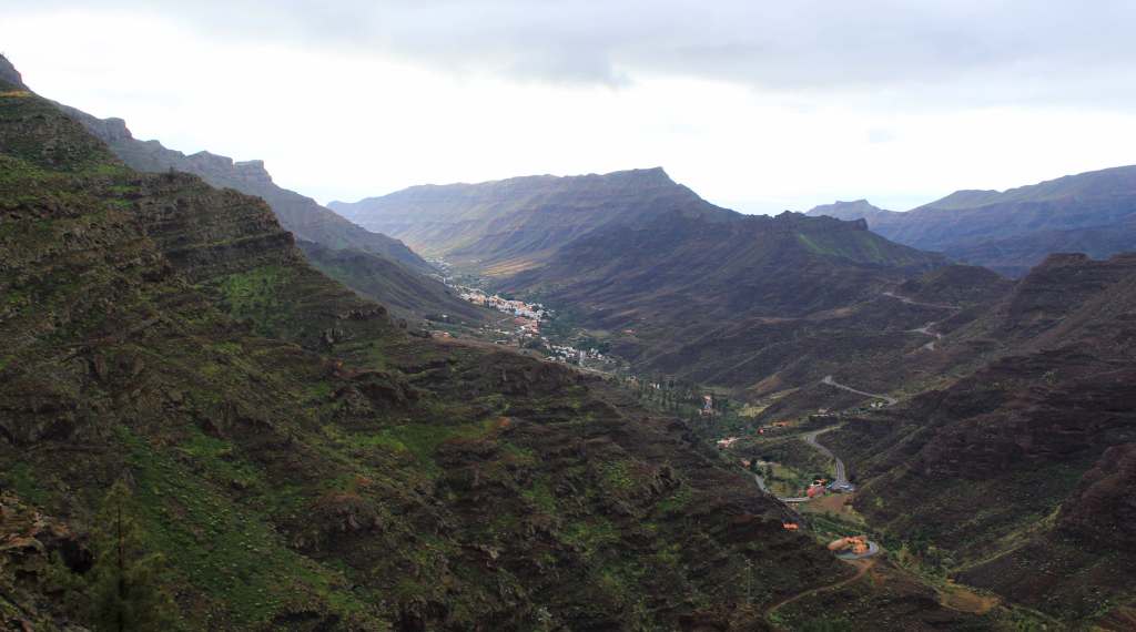 This did it for our time on the south coast. To return to the north, we decided to drive through the center of the island. The road took us high up into the mountains in the interior, until we approached the highest peak, the Pico de las Nieves. Unfortunately for us, during the drive the weather turned from pristine blue skies to downcast to downpour. By the time we got to the mountaintop, ice-cold rain was lashing down, and we decided not to get out of the car. There wouldn’t have been much of a view, anyway.