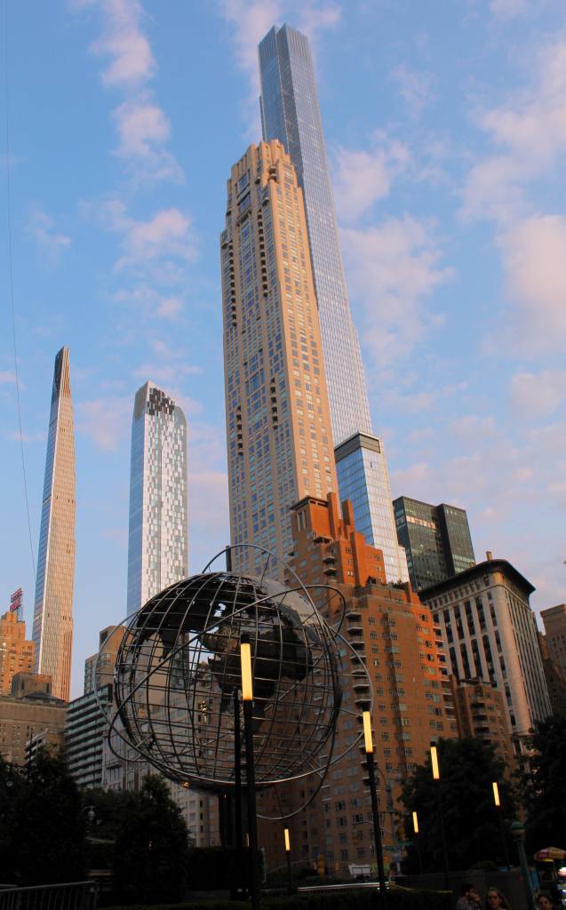 Above us, some of the tallest buildings in Manhattan soared off into the sky. This is Billionaire’s Row, a collection of supertall, pencil-thin, ultra-luxury apartment buildings at the bottom of Central Park. For me, though the skyscrapers are impressive as feats of engineering, the buildings make a dubious addition to Manhattan’s skyline—imposingly tall, but not particularly pretty. And, of course, it is rather depressing to have the city’s silhouette dominated by properties to be used as investments for the super rich.