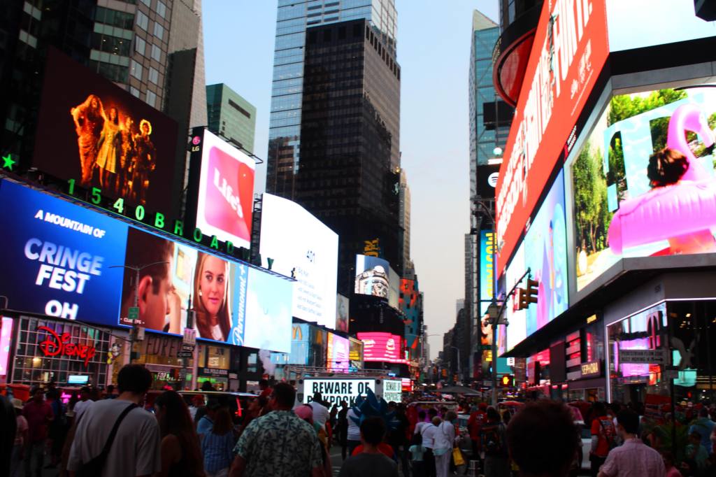 Almost as soon as we left Columbus Circle, we entered Times Square. Far from a discrete part of the city, Times Square seemed to spread impossibly far, its bright and suffocating tentacles strangling block after block. It seems unnecessary to describe the scene—the smothering crowds of gaping tourists, the blinding lights and flashing signs, the street acrobats occupying the sidewalks, the Elmos and Marios and Mickey Mouses (some with their helmets off, smoking a cigarette)—but I do want to mention the religious fanatic, who was standing on a street corner and yelling that Christianity had abandoned Jesus Christ. A man in a wifebeater stopped to shout “Fake news!” nonsensically at the preacher, and his young son did the same.