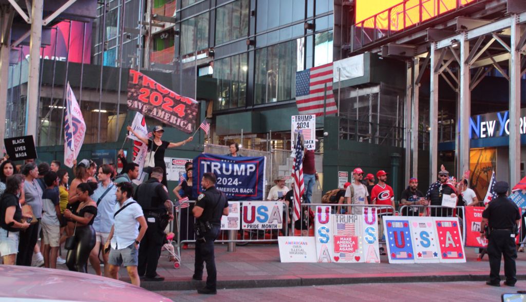 Right as we were approaching the southern end of Times Square, and the limit of our tolerance, we passed by a glowing neon American Flag, in front of which a drag queen was yelling into a megaphone, leading a boisterous anti-Trump rally. Just across the street there was a decidedly smaller pro-Trump rally, trying in vain to maintain a similar energy-level. My favorite character was a very calm black man who stood next to the Trumpers, casually holding a Black Lives Matter sign and chatting to his friend.