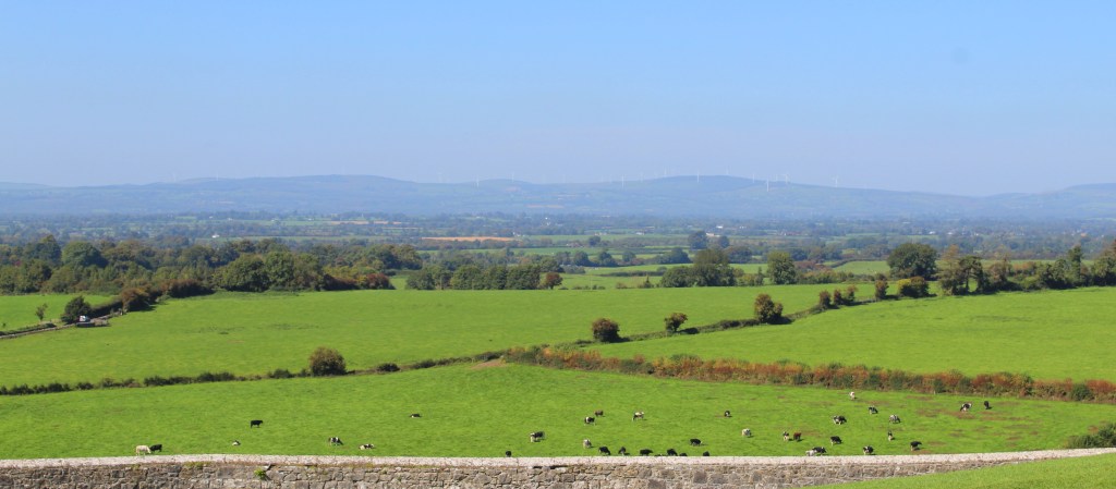 Our tour ended on the northern side of the site. In the far distance, the low, lush fields of the Golden Vale spread endlessly outwards. After the cathedral’s destruction, the hill was still used as a cemetery for many years. Many graves thus adorn this side of the hill, giving a somber mood to an already haunting place. As usual in Ireland, many centuries seemed to be compressed beneath our feet.