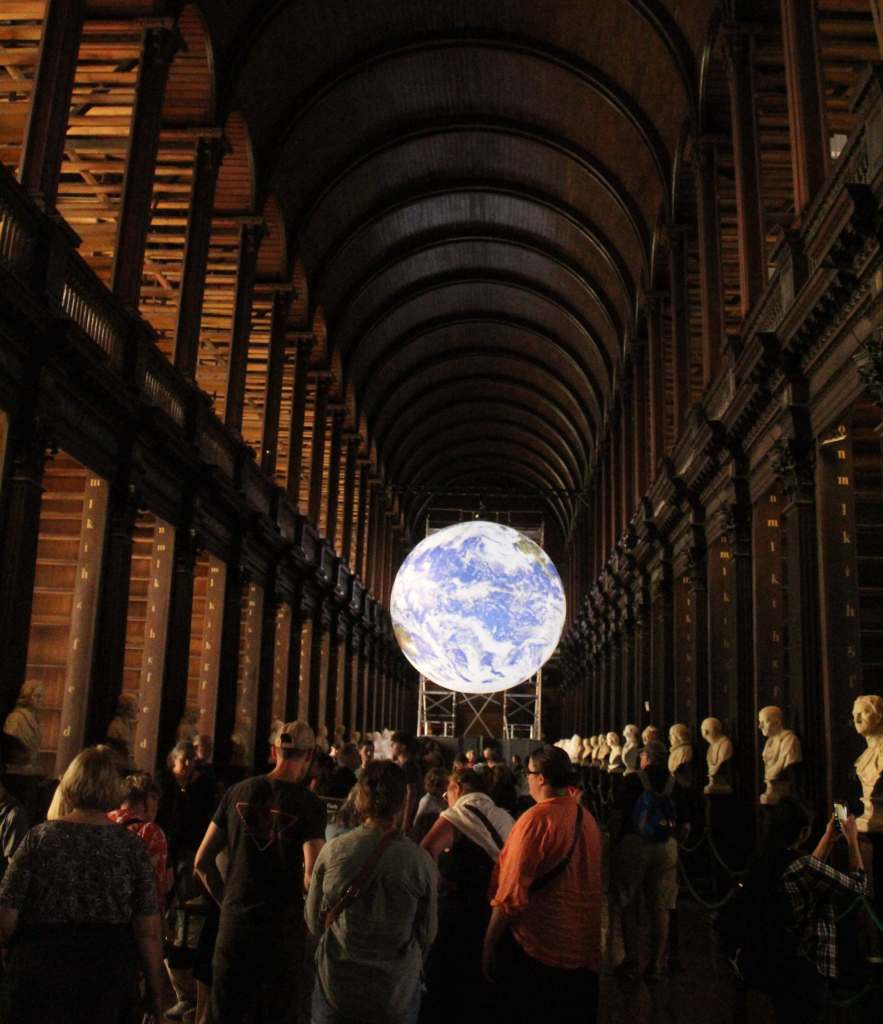 The Book of Kells is one of the treasures of European art—an intricately decorated copy of the Gospels. It is notable not only for its artistry but for its age: at a time when Europe was at its lowest cultural ebb, friars in remote Ireland were keeping the flame of culture alive. Trinity College is also worth visiting in itself for its historic campus, and especially its stunning old library. When I visited the artwork Gaia, by Luke Jerram, was on display. This is an inflatable globe, lit from the inside, which looks remarkably like photos taken of the earth from space when viewed at the end of the dark hallway.