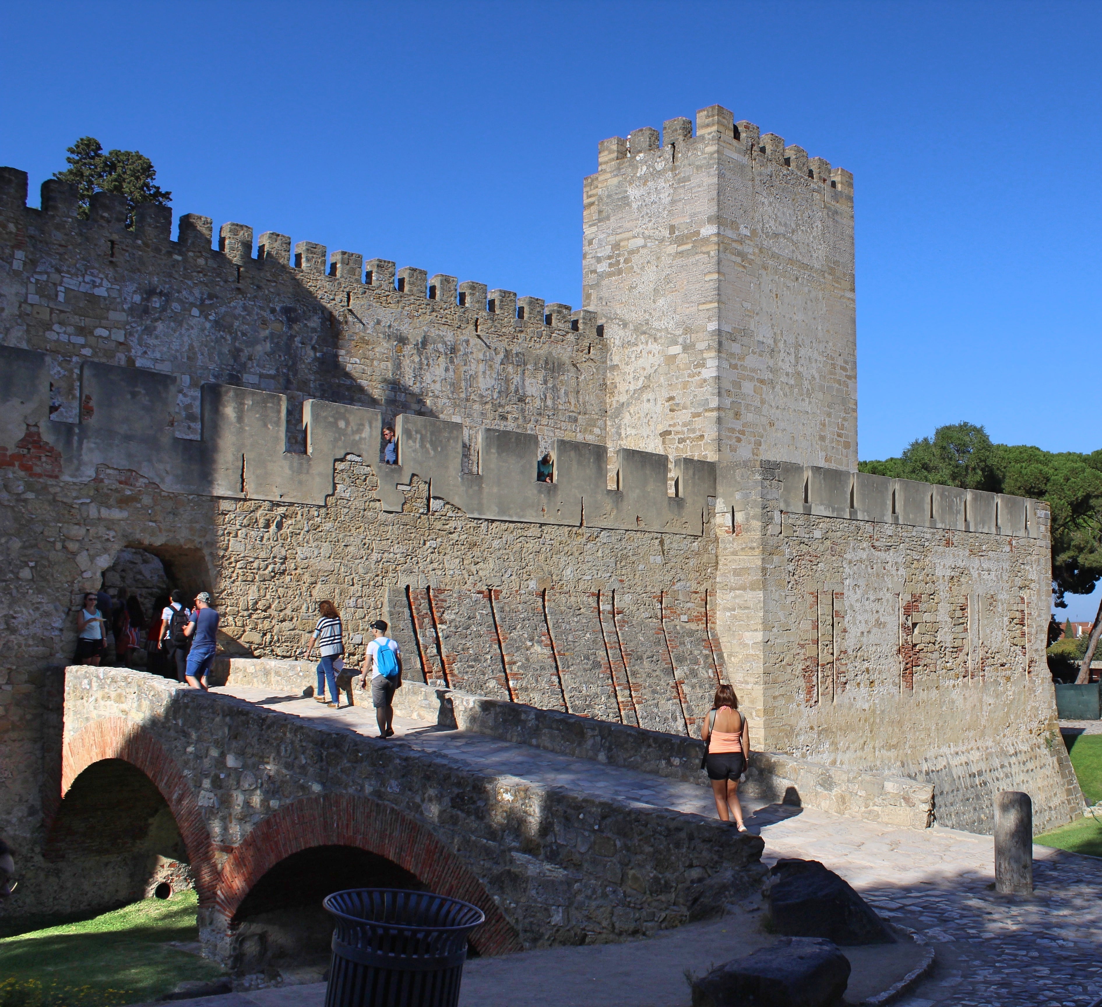 By continuing up the hill you will reach what is simultaneously one of the best views and the most impressive monuments of Lisbon: the Castelo de São Jorge. This medieval fortification is built upon the ancestral core of the city, where everybody from the Phoenicians to the Moors had their own forts. This is no surprise, of course, since the castle stands upon an easily defensible spot, controlling all the surrounding ground and providing an excellent view of the river as well. It is a superb spot.