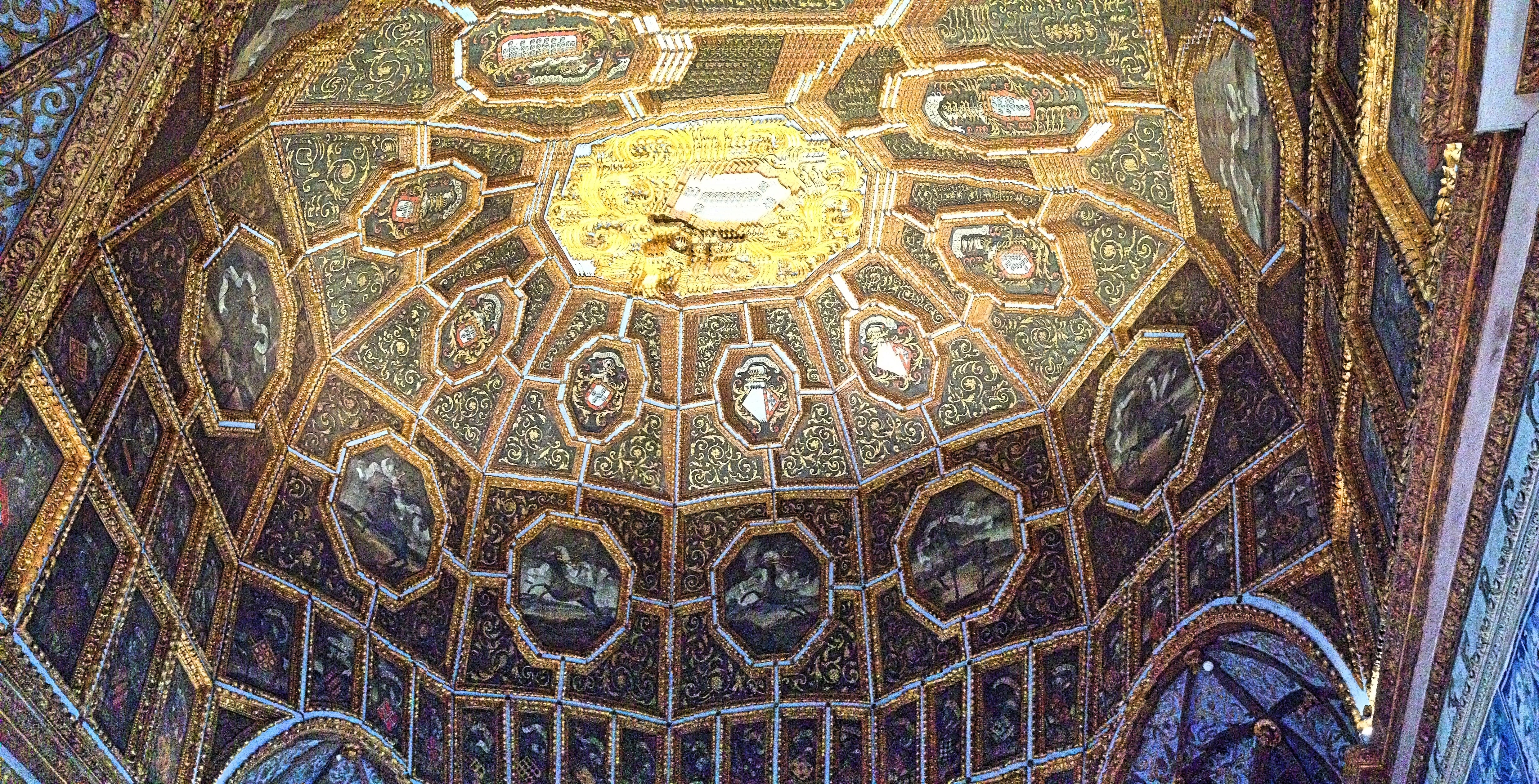 The Hall of Blazons, with some distortion from the panoramic