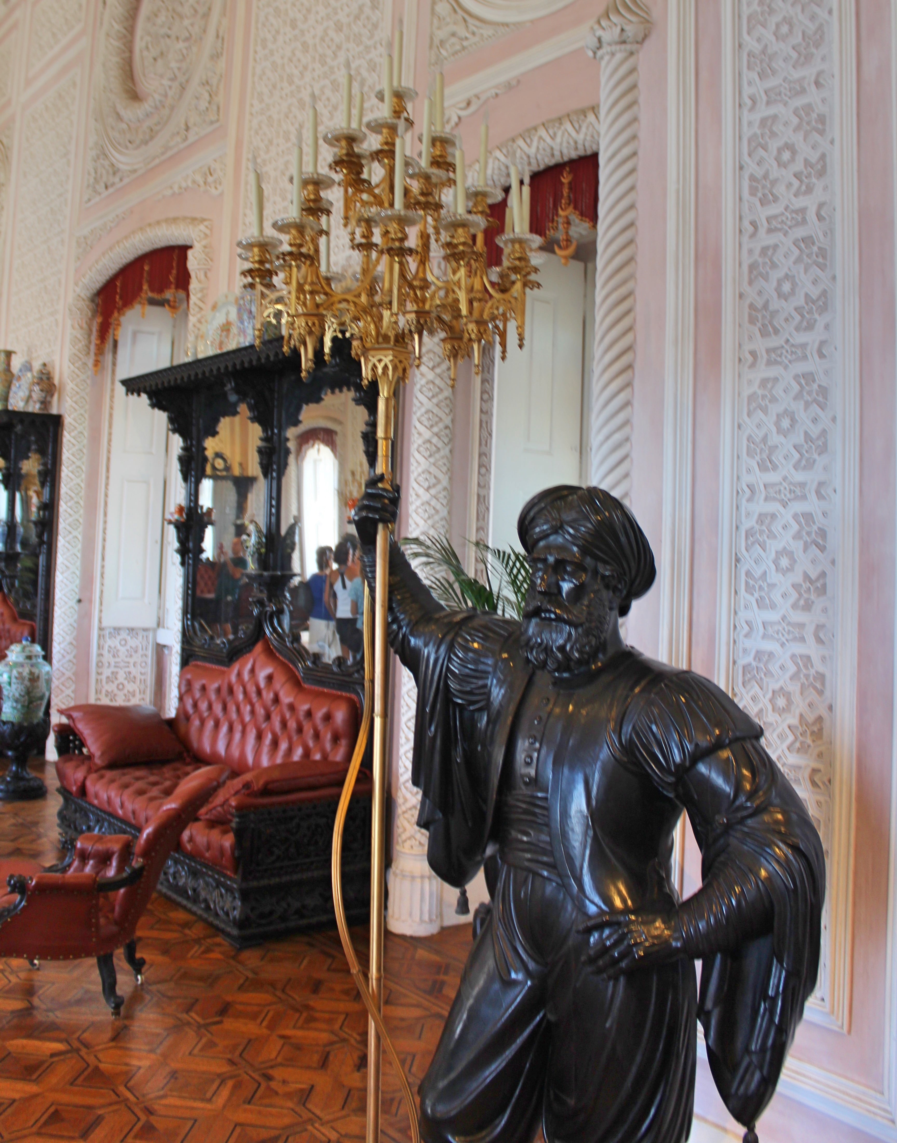 I particularly remember the Sala das Assembleias, the merchant equivalent of the throne room, all of it decorated in fake lacquered wood (actually the “wood” is painted on) and filled with elegant furniture. Yet the most marvelous room in the building is without doubt the Arab Room, an enormous space whose walls are decorated in a Neo-Mudéjar style, imitating the stucco patterns of the Alhambra, yet adding ostentatious colors to the mix. If the Commercial Association wanted to impress visitors with their splendor, they did an excellent job.